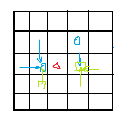 qq 群里群友教了一个高手的实现:可以不用钦定是否经过跟红色位置在一行的位置,转而钦定经过跟它在一条斜线上的位置。边界情况少很多。